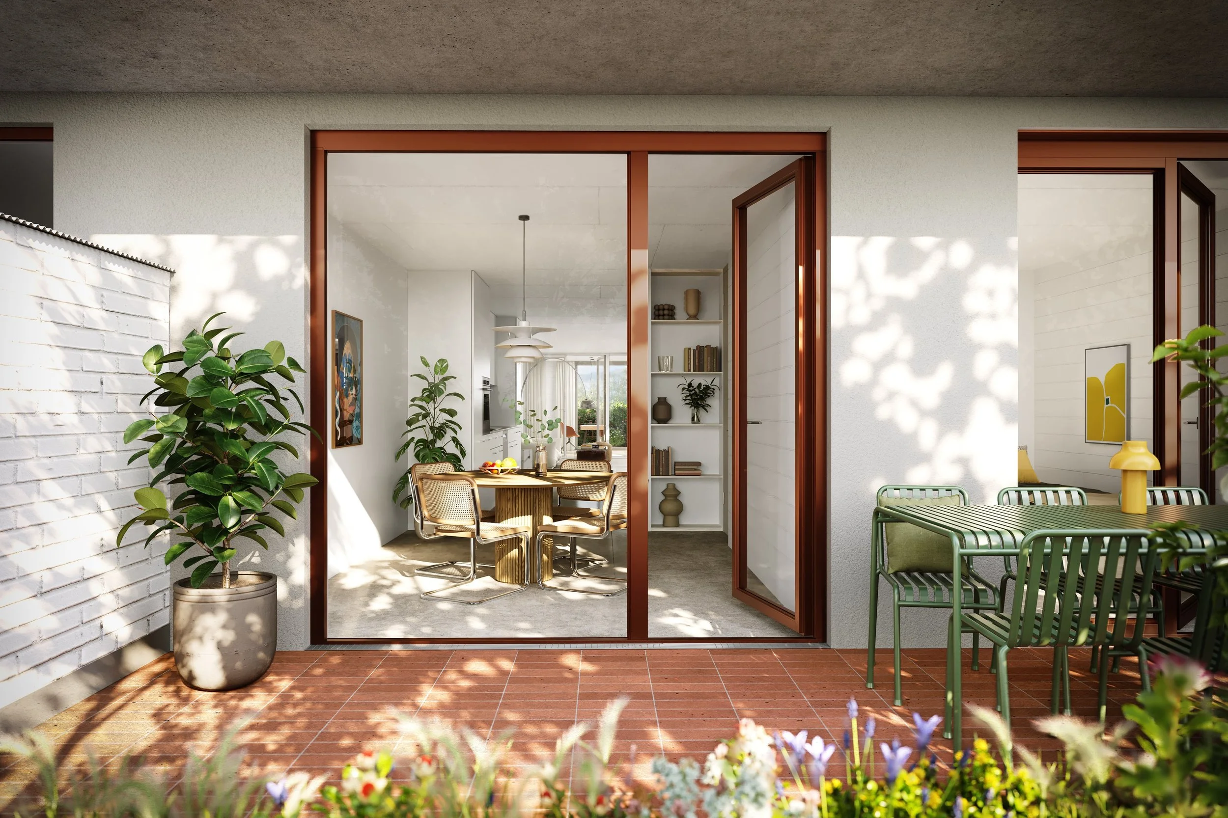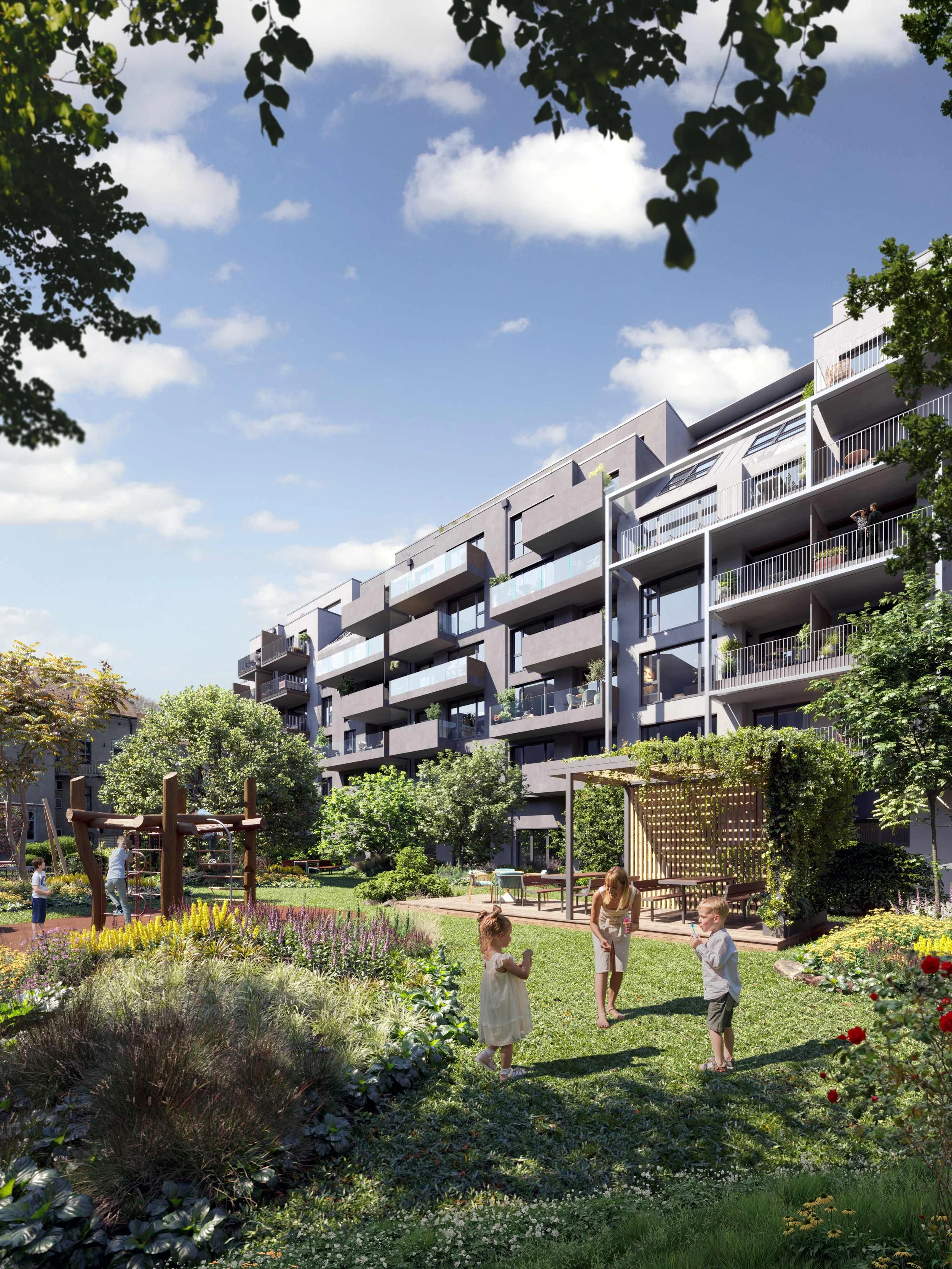 Immobilienvisualisierung Linz _ grünen Innenhof